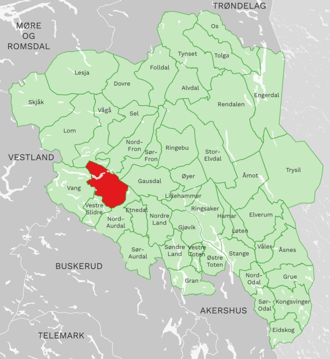 📌 Plassering av Øystre Slidreåne