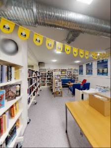 Et lite, men veldig hyggelig bibliotek. Får de bøkene en trenger. Det som ikke finnes i hyllene bestilles.