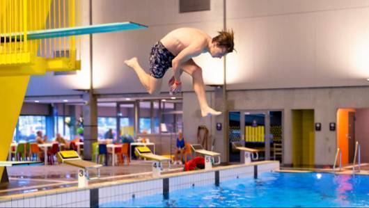 Svømmehallen er flott med morsom sklie for små og større barn. Hoppebrett og hinderløype.