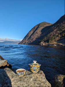Vi fekk ikkje kåra oss, ettersom staden var stengd i november, men vi nyttja likevel uteplass under besøket vårt. Det var flott å ha en piknik med familien vår, med utsikt over vannet og naturen rundt oss.